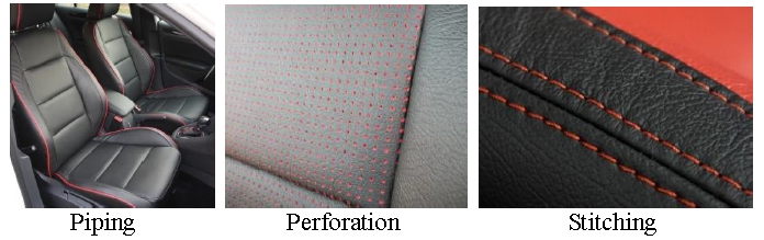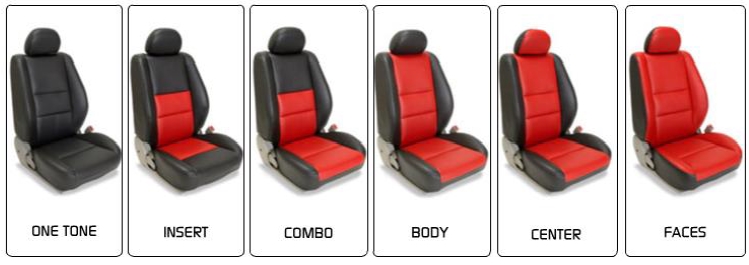 - Custom options include: Suede inserts, Perforated inserts, Piping, and Stitching